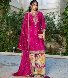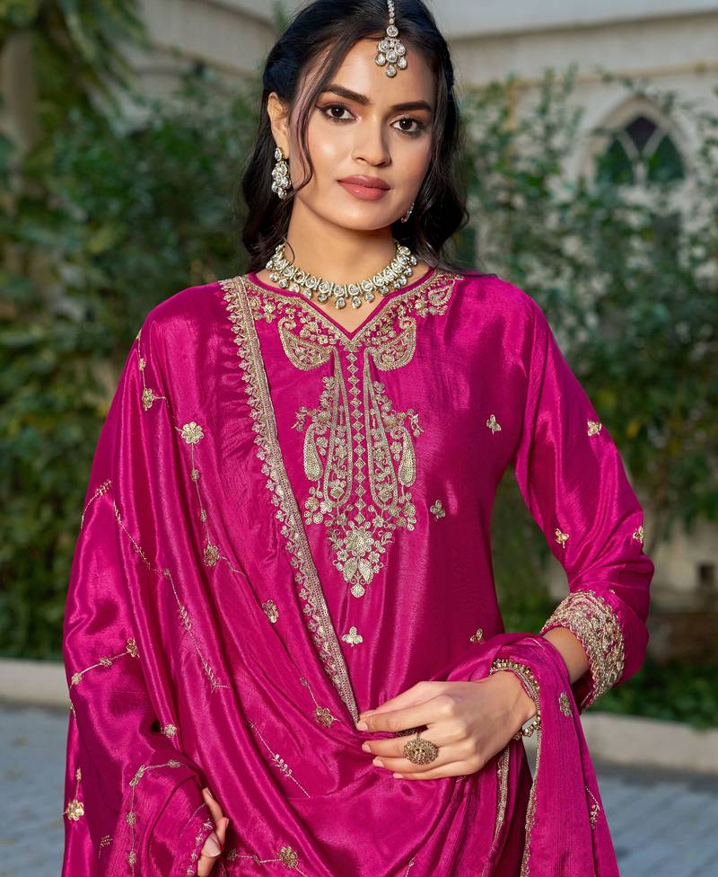 | Product Name | Pink Embroidered Chinon Free Size Stitched Palazzo Style Salwar Suit | |