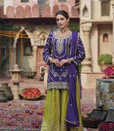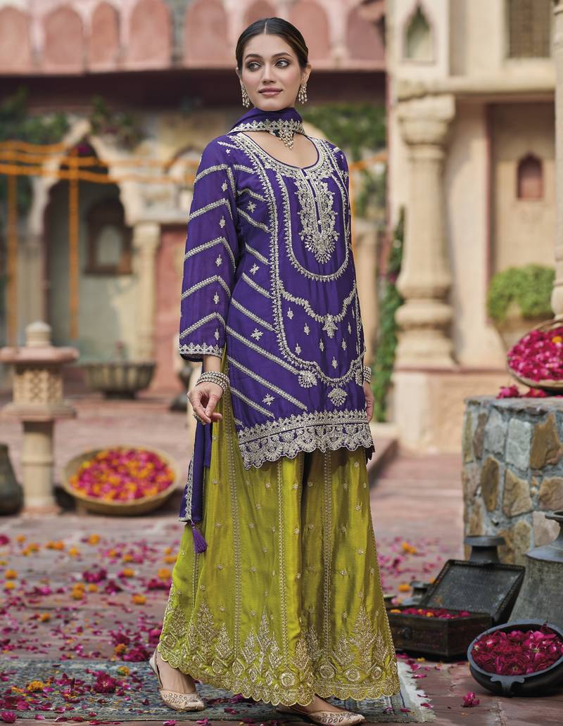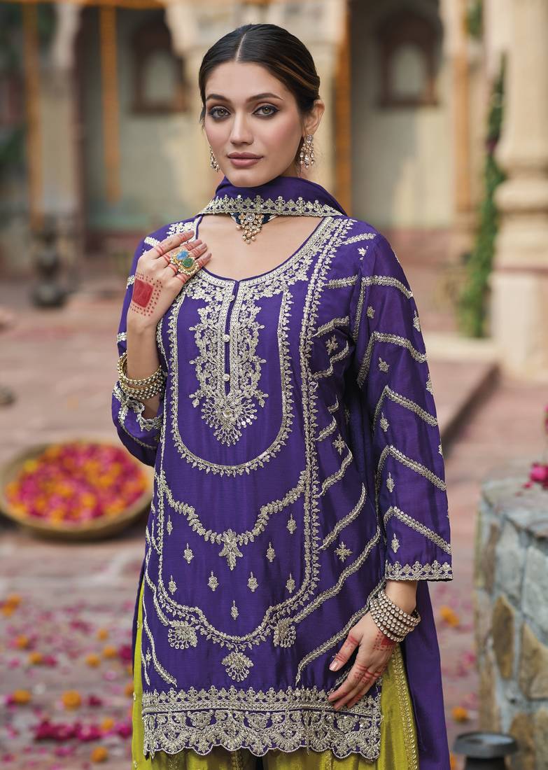 | Product Name | Purple Embroidered Chinon Free Size Stitched Palazzo Style Salwar Suit | |