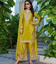 | Product Name | Yellow Embroidered Chinon Free Size Stitched Palazzo Style Salwar Suit | |