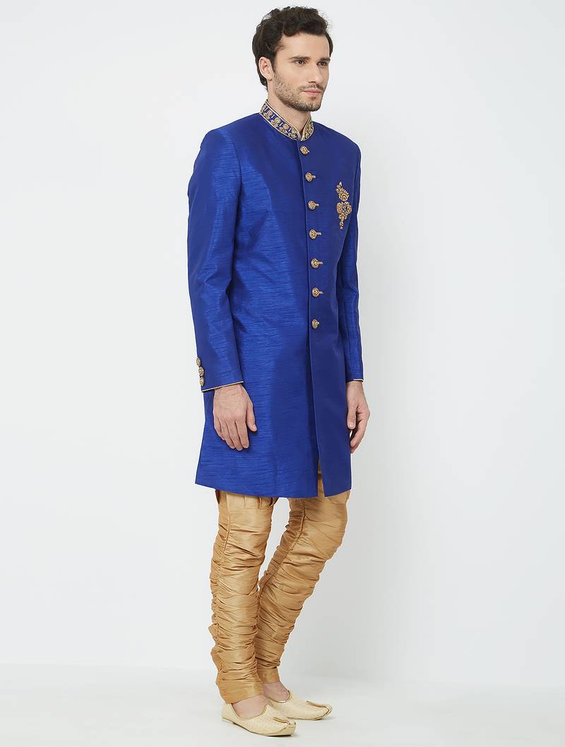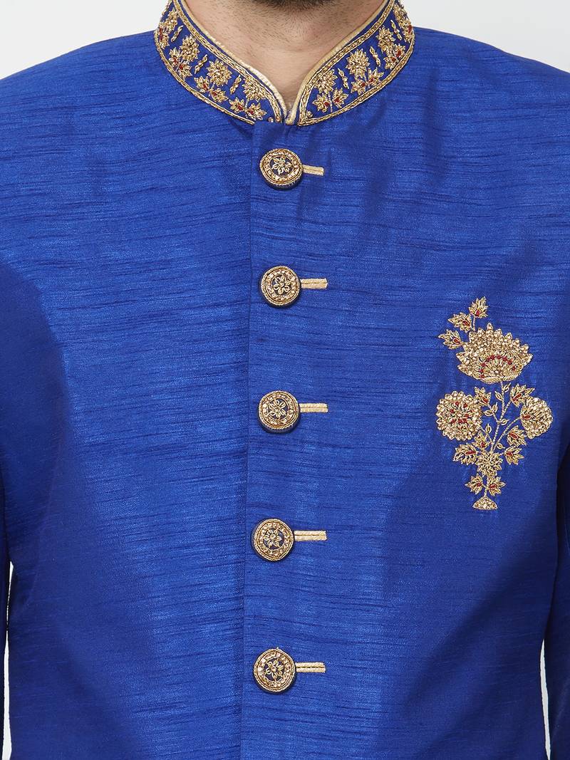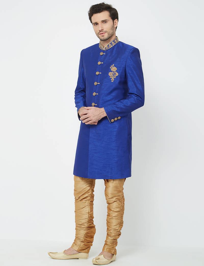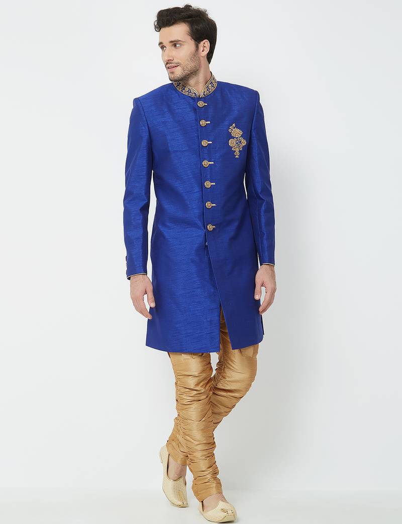 | Product Name | Blue Art Silk Straight Handwork Sherwani For Men's | |