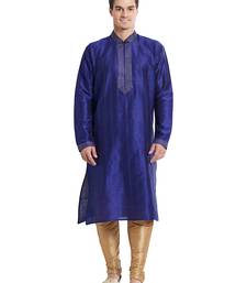 Blue art silk straight stitched kurta for men's