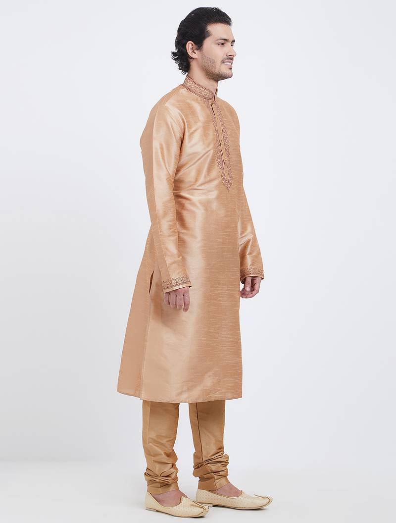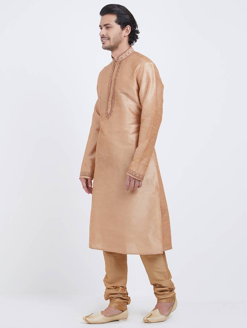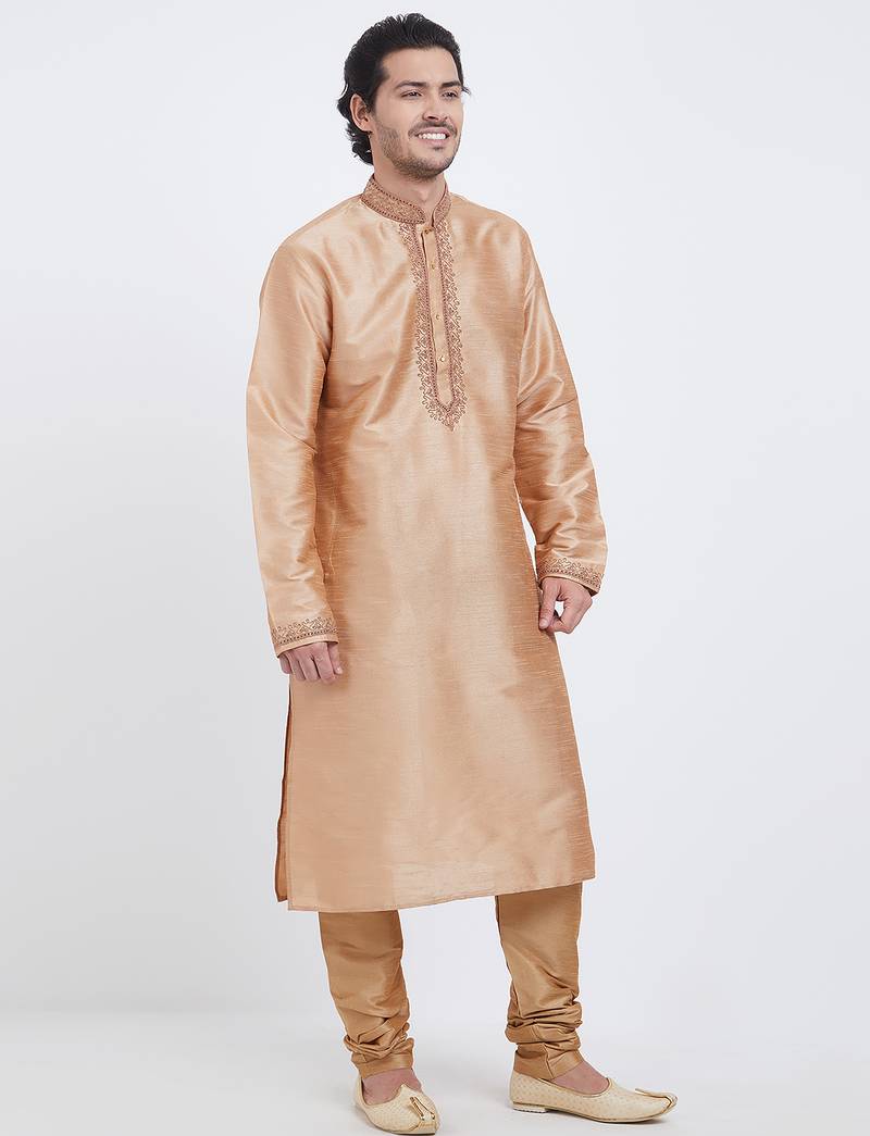 Chiku art silk straight embroidery kurta for men's