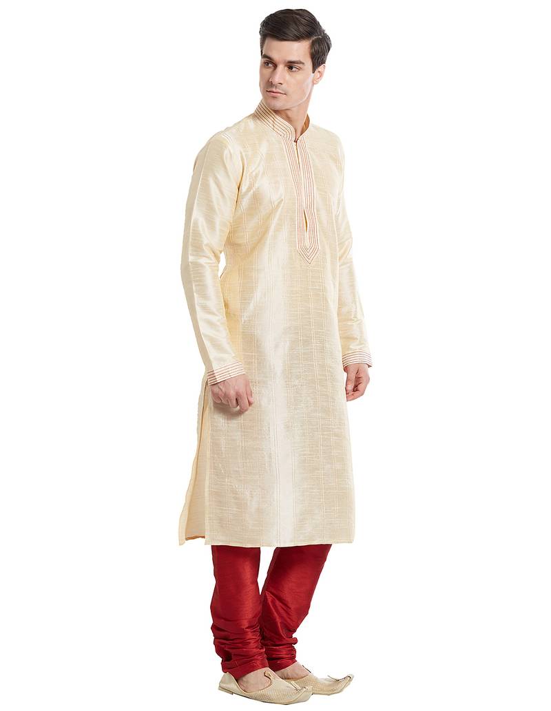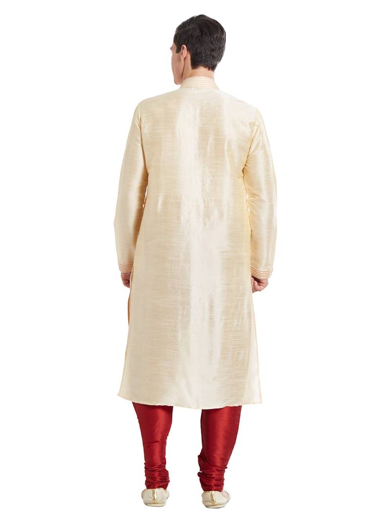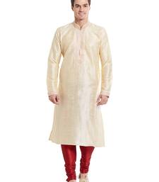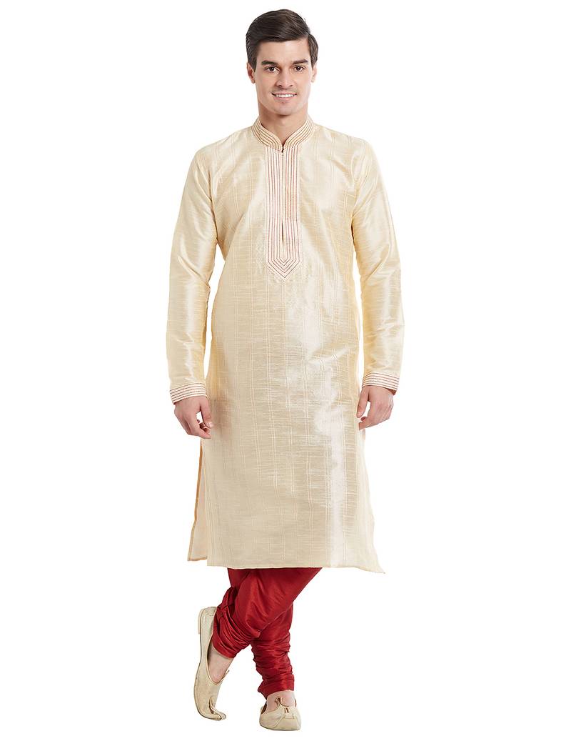 Fawn art silk straight stitched kurta for men's