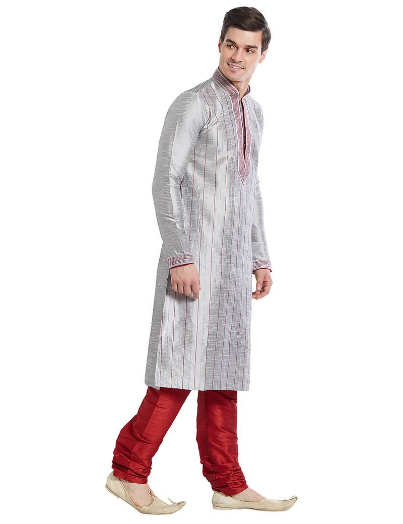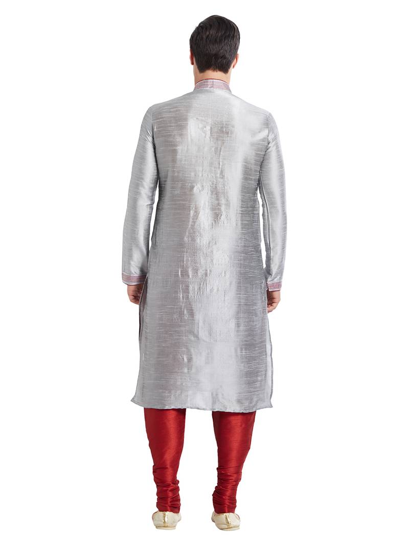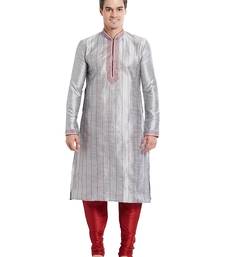 Grey art silk straight stitched kurta for men's