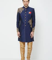 Navy blue art silk straight embroidery with handwork sherwani for men's
