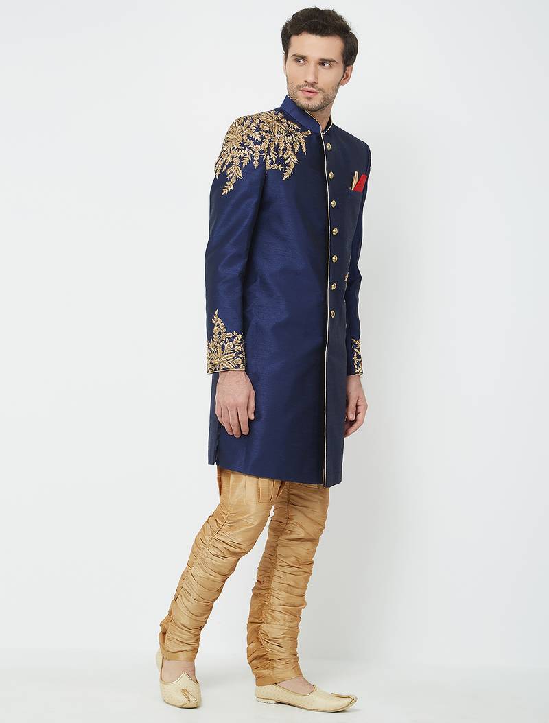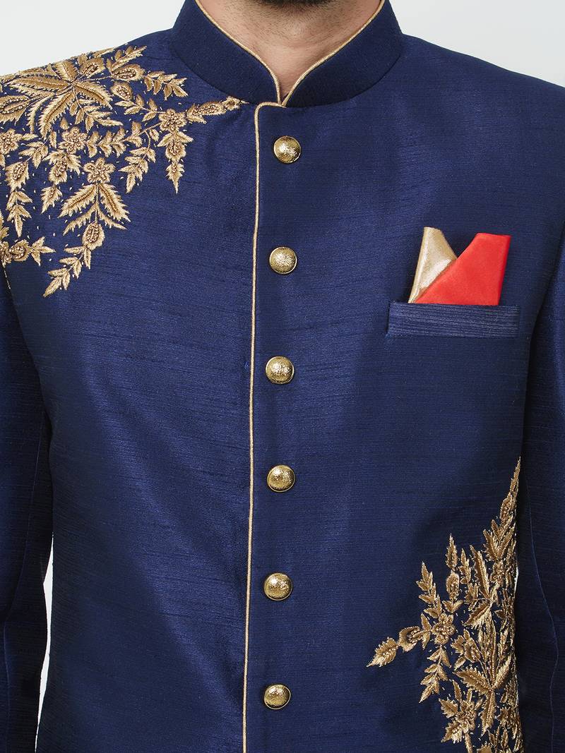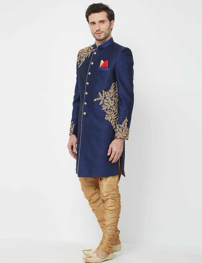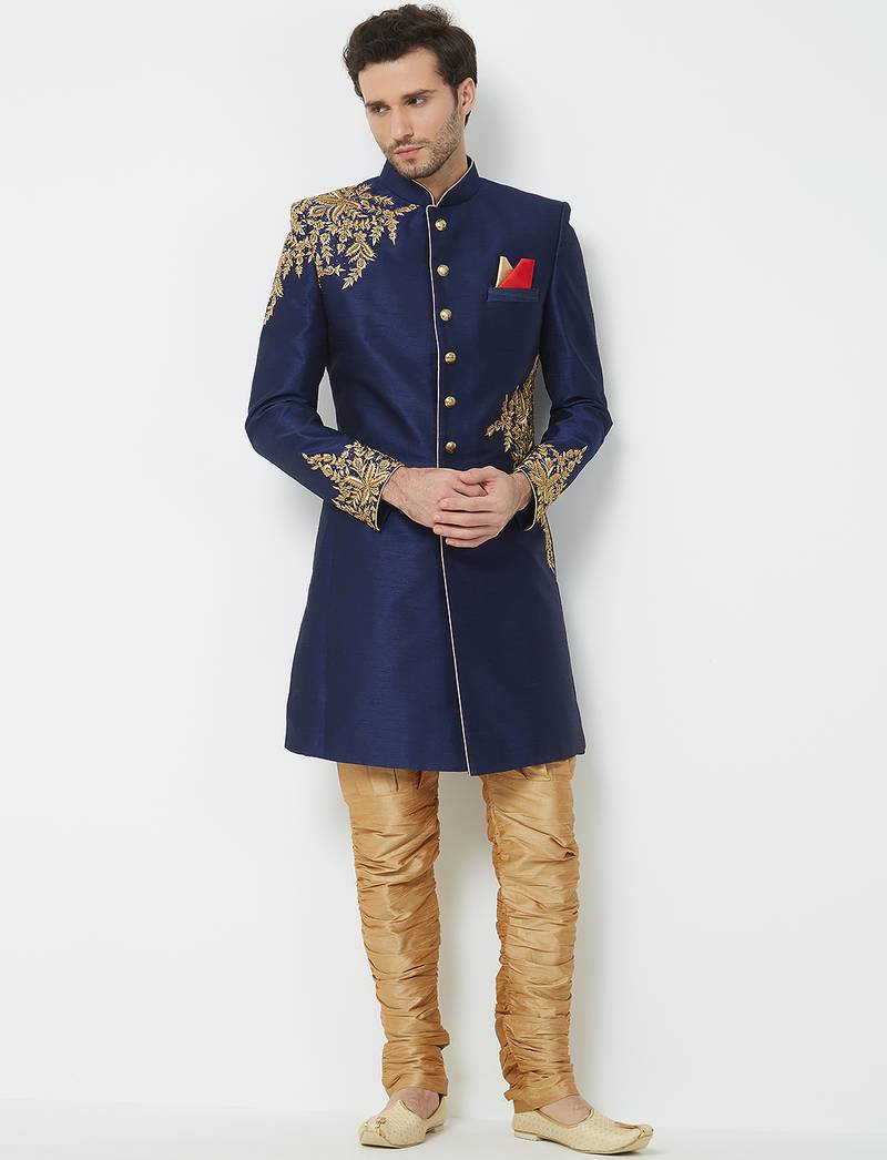 | Product Name | Navy Blue Art Silk Straight Embroidery With Handwork Sherwani For Men's | |