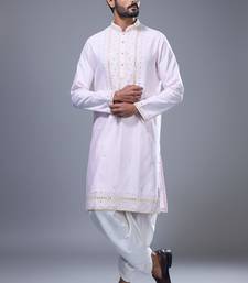Powder pink silk straight embroidery, mirror pink silk embroidery, mirrors floral and work full sleeve kurta set
