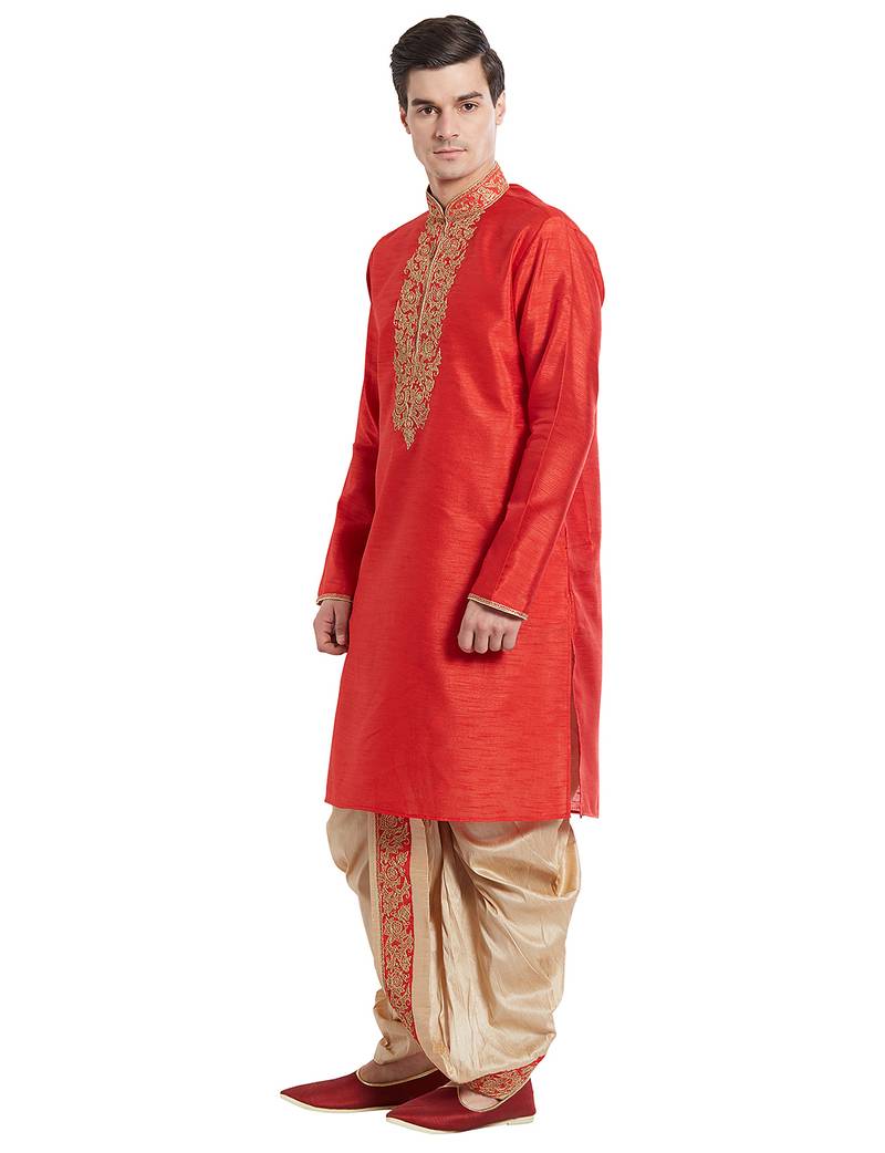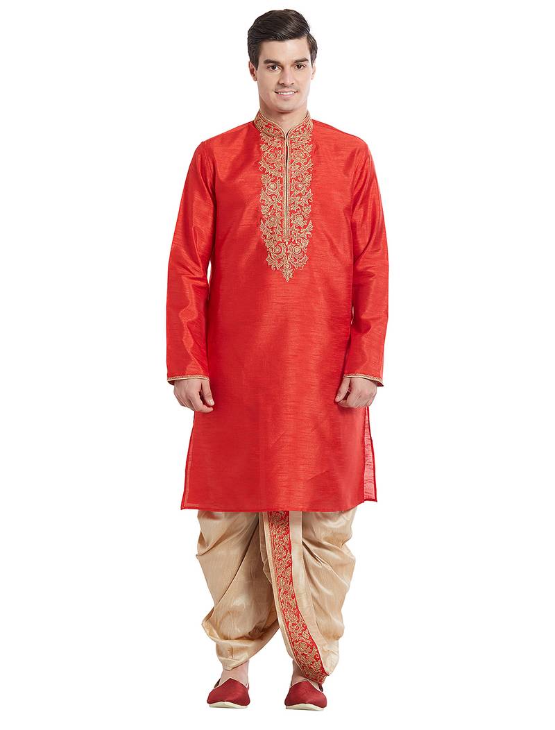 | Product Name | Red Art Silk Straight Embroidery Kurta For Men's | |