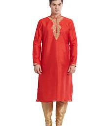 Red art silk straight embroidery kurta for men's