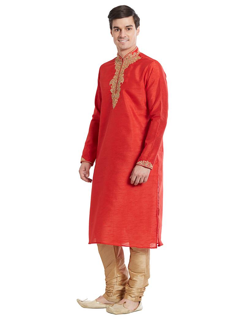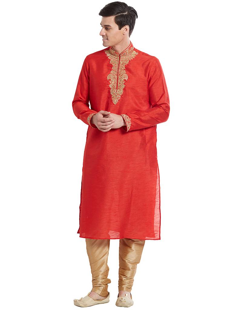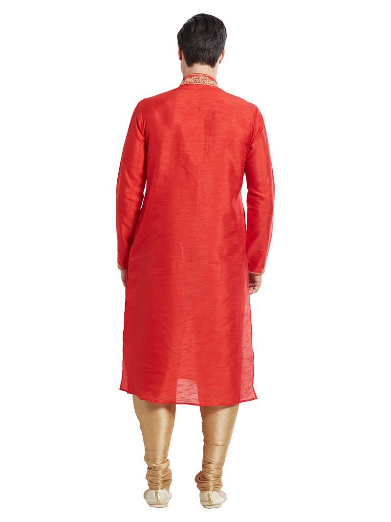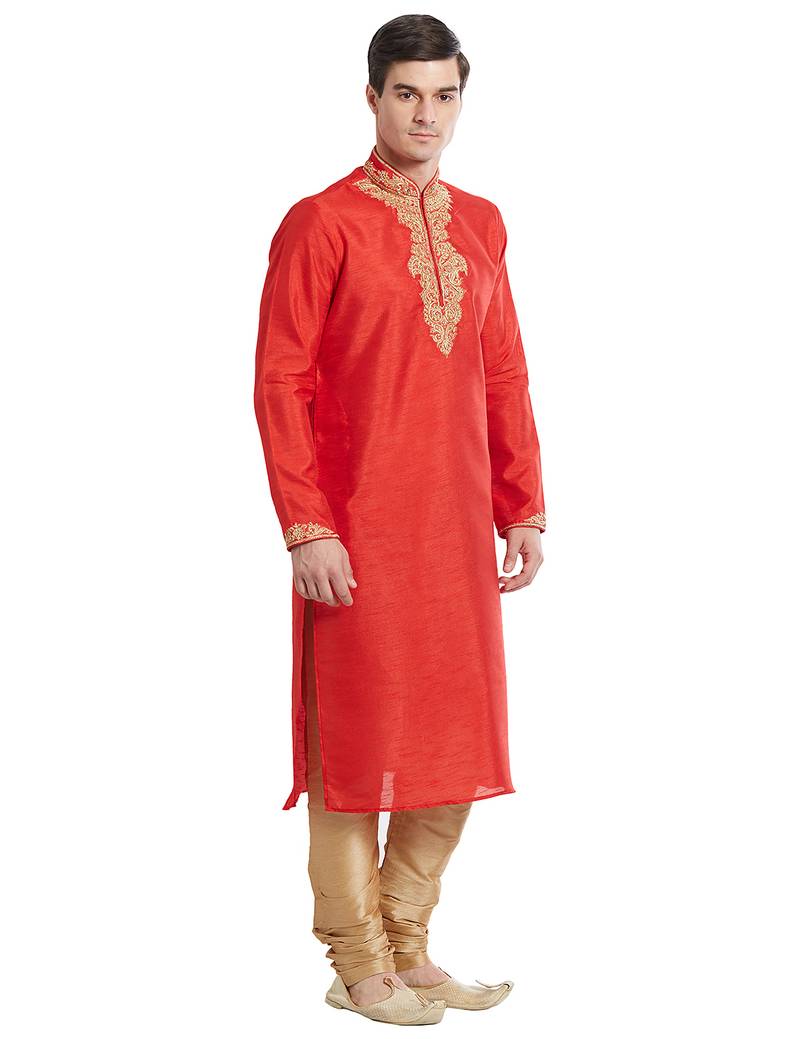 | Product Name | Red Art Silk Straight Embroidery Kurta For Men's | |