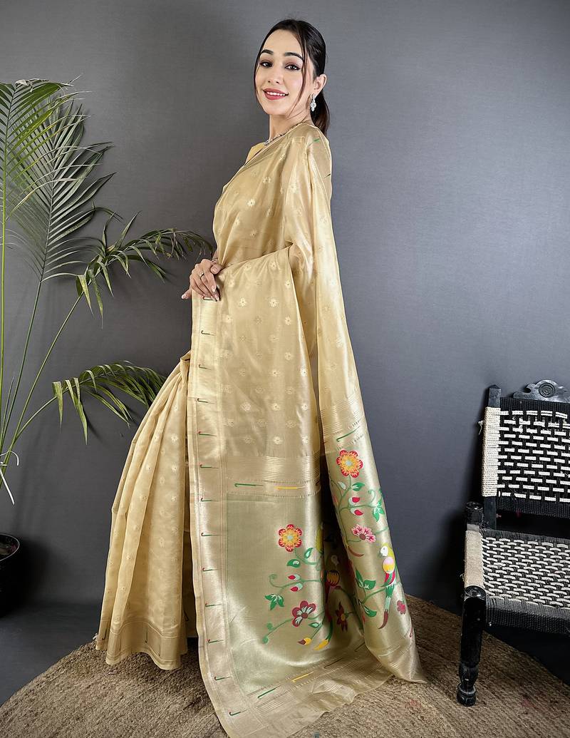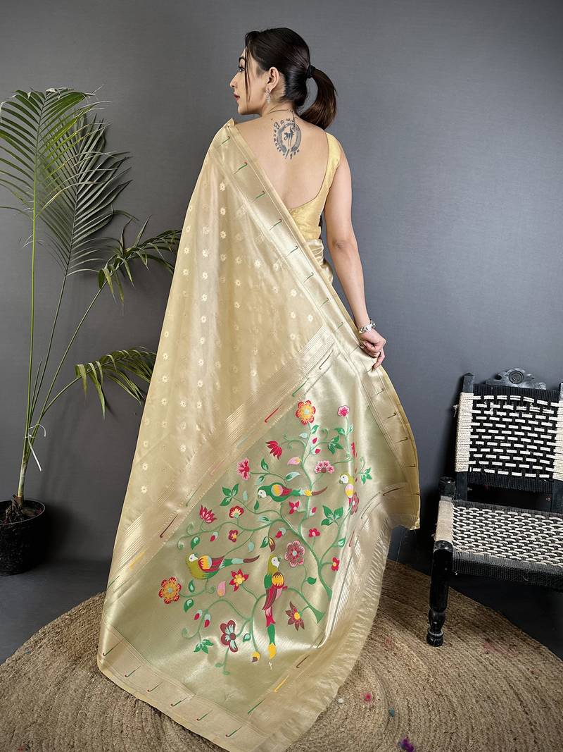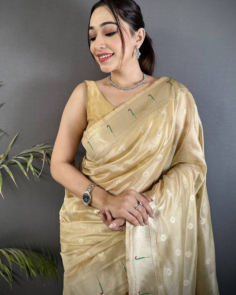 | Product Name | Women Beige Parrot & Floral Woven Design Tissue Saree | |