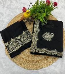 Women black embroidered rangoli crush silk saree