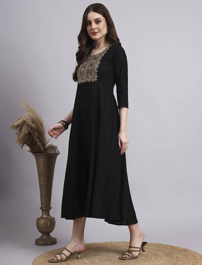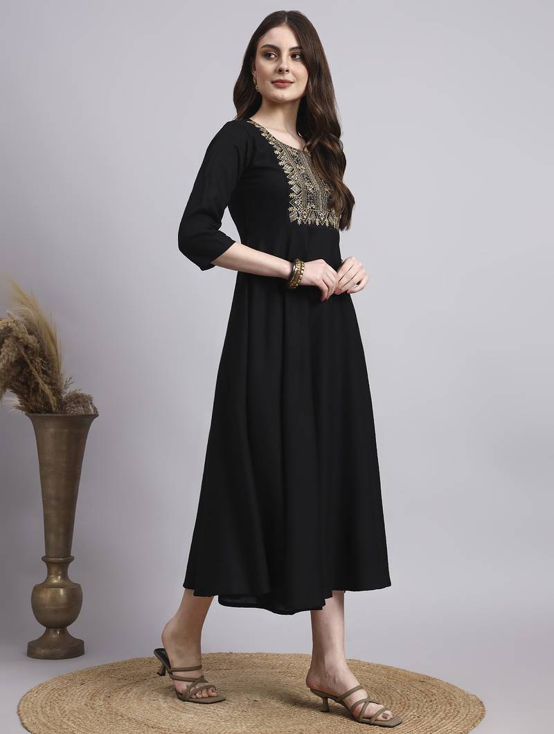 | Product Name | Women Black Embroidery Rayon Dress | |