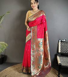 | Product Name | Women Crimson Ikkat Floral Motifs Lichi Silk Saree | |