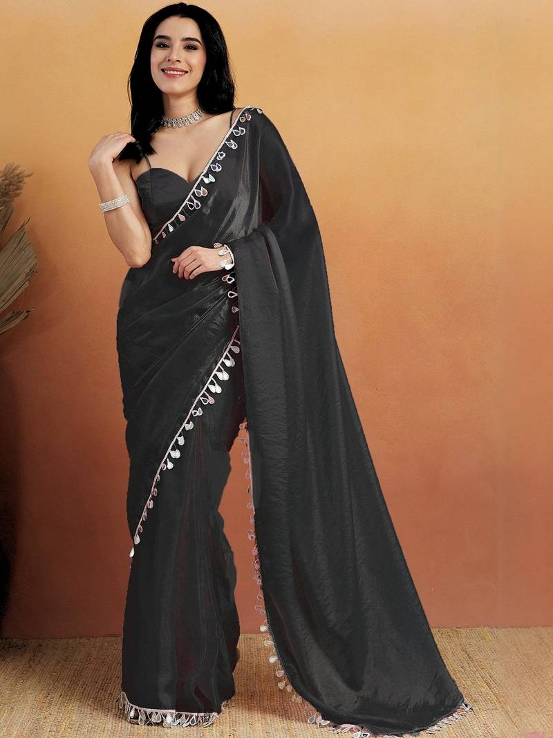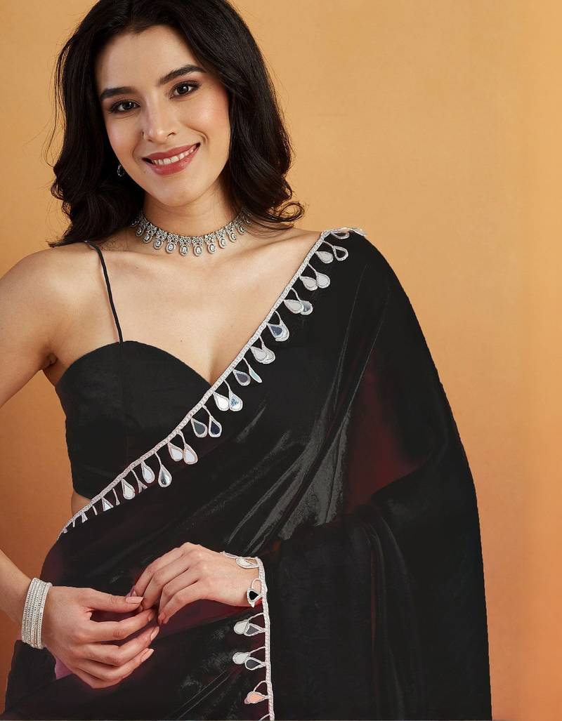 | Product Name | Women Gorgette Black Zari Lace Work Saree | |