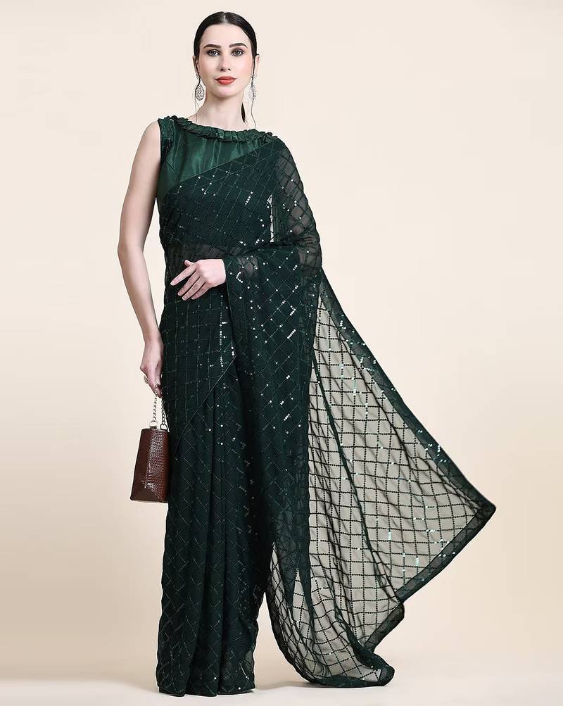 | Product Name | Women Gorgette Green Zari Lace Work Saree | |