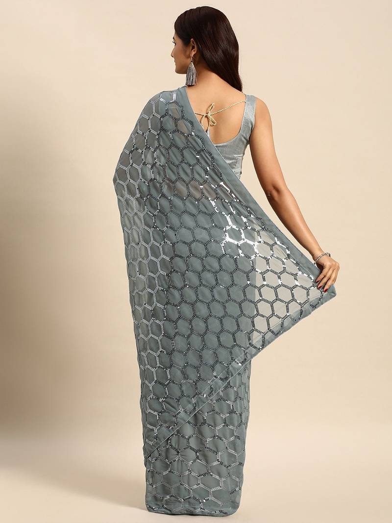 Saree : Color- Grey / Fabric- Georgette