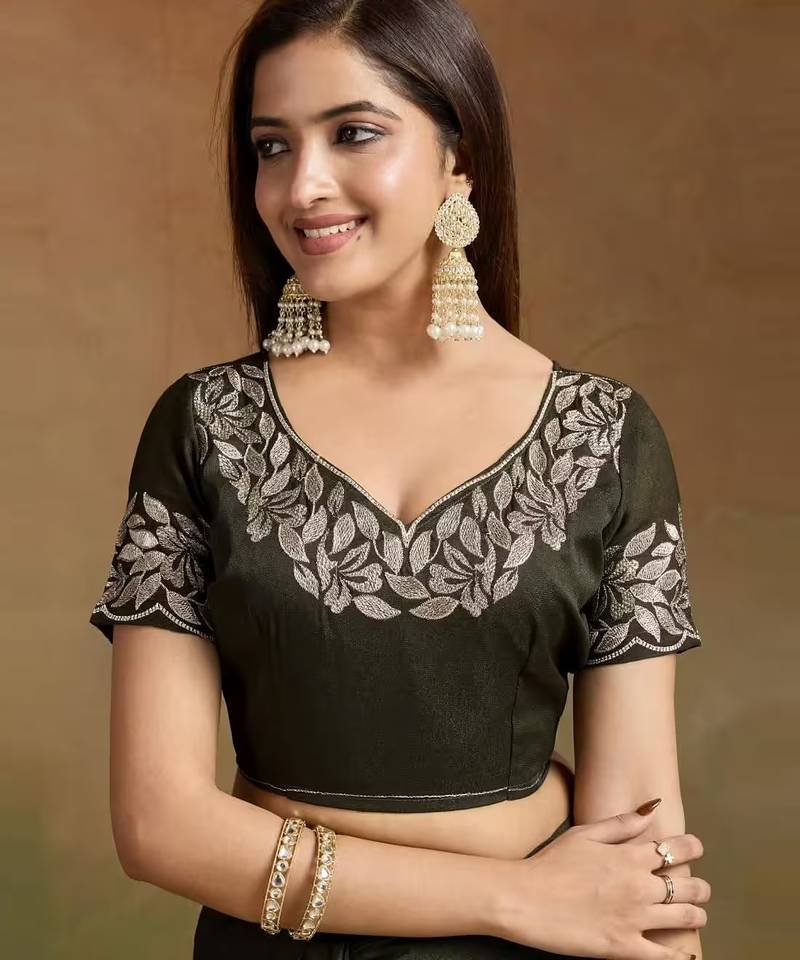 | • | Blouse | : | Color- Mehendi / Fabric- Art Silk |