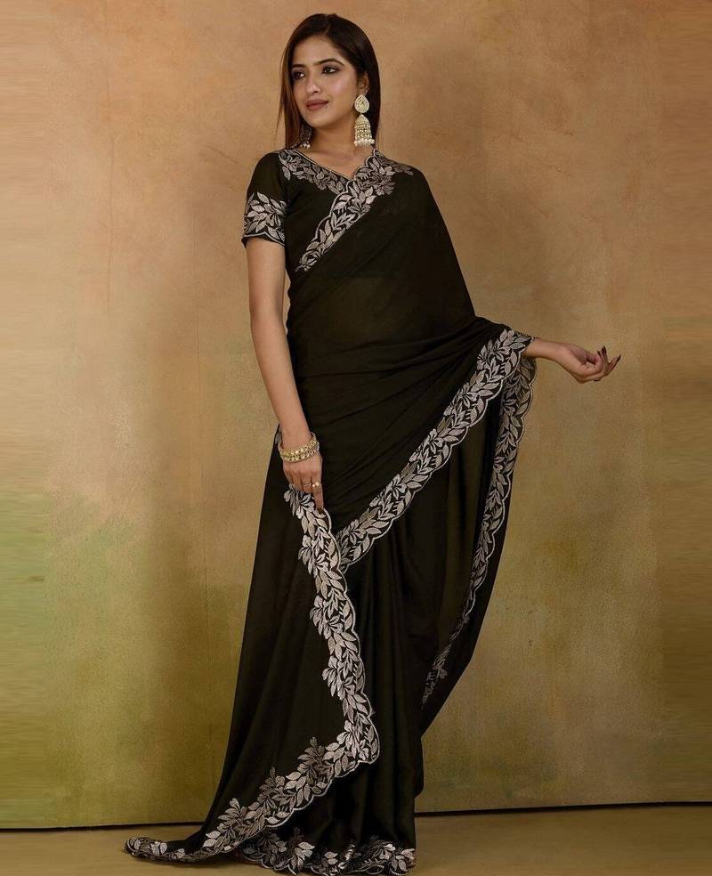 | Product Name | Women Gorgette Mehendi Zari Lace Work Saree | |