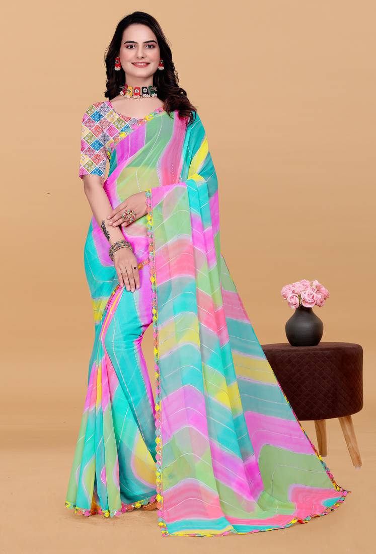 | Product Name | Women Gorgette Multi Color Zari Lace Work Saree | |