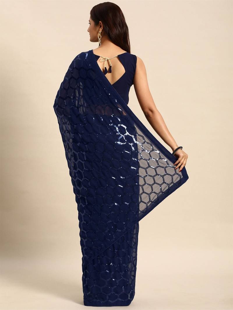 Saree : Color- Navy Blue / Fabric- Georgette