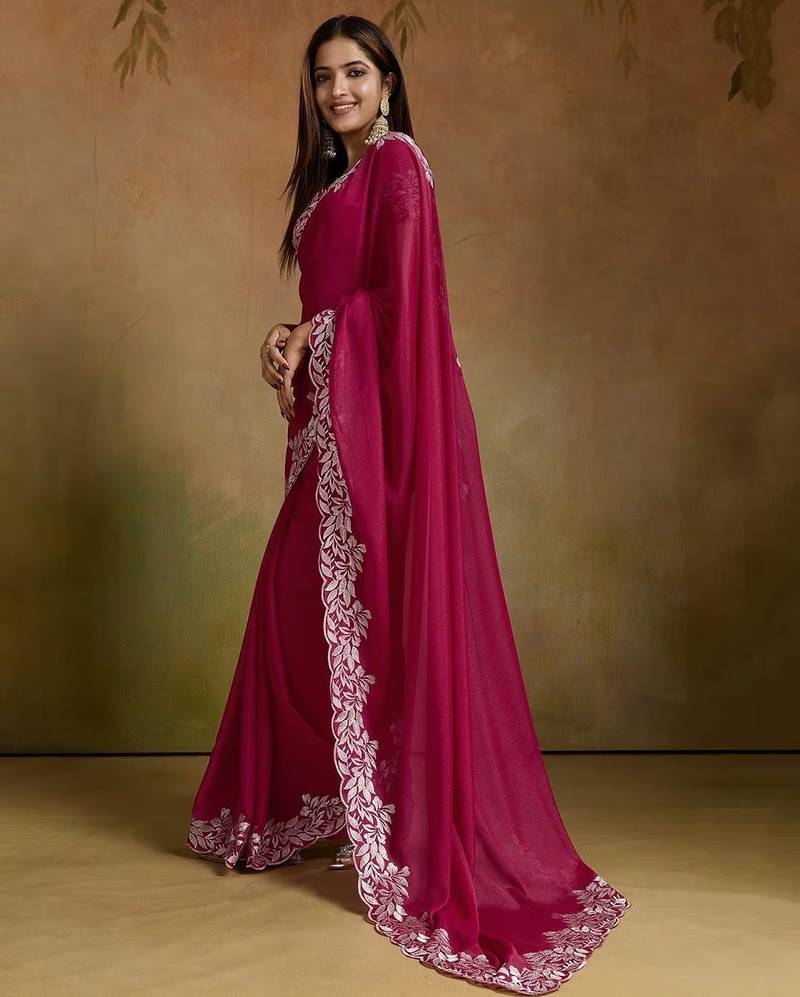 | Product Name | Women Gorgette Pink Zari Lace Work Saree | |