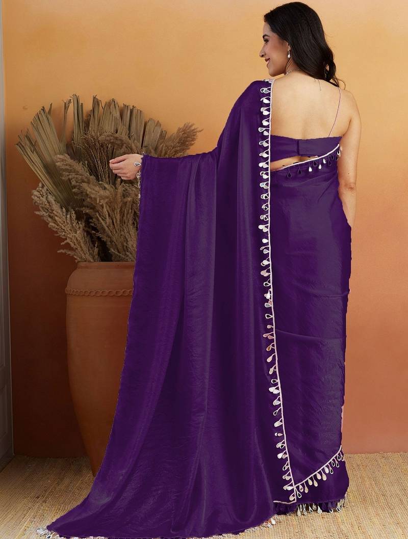 | Product Name | Women Gorgette Purpule Zari Lace Work Saree | |