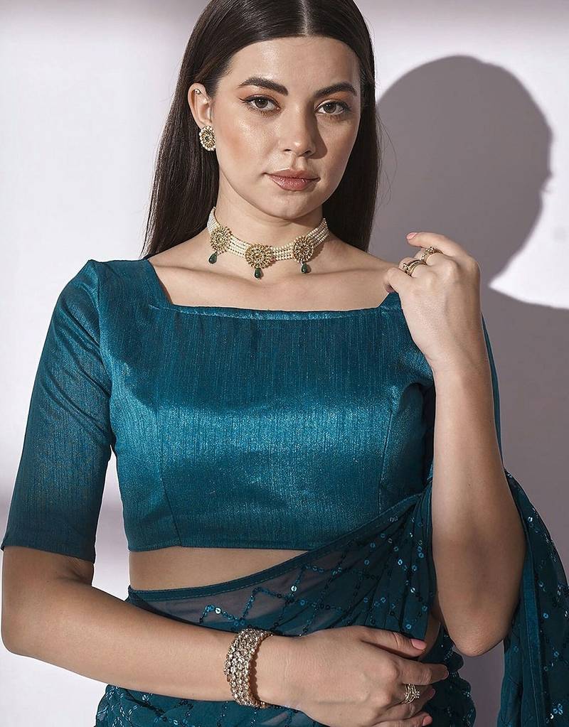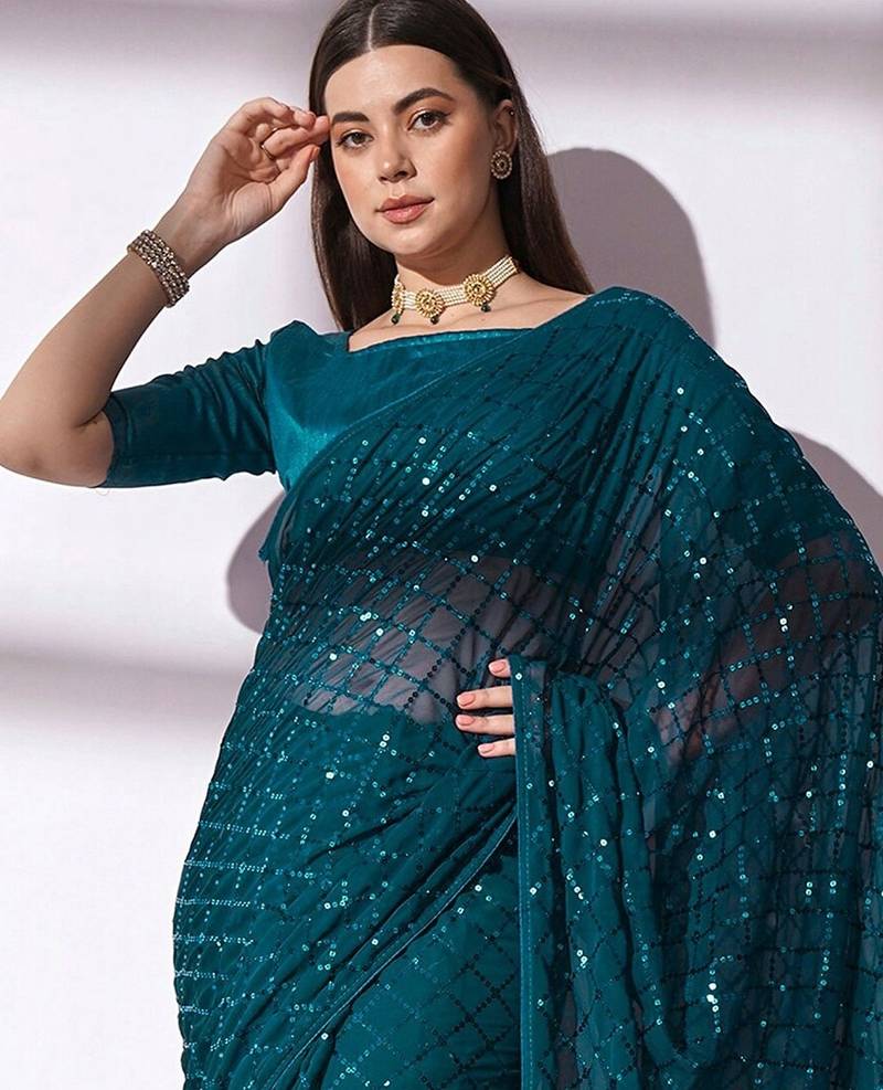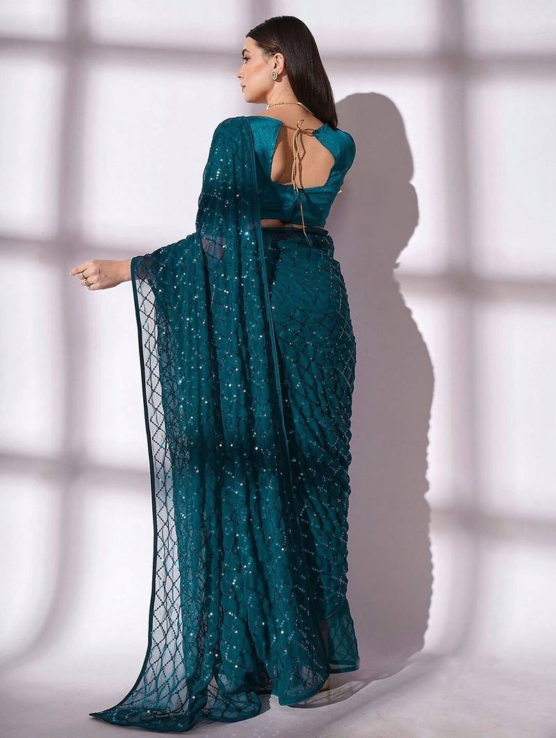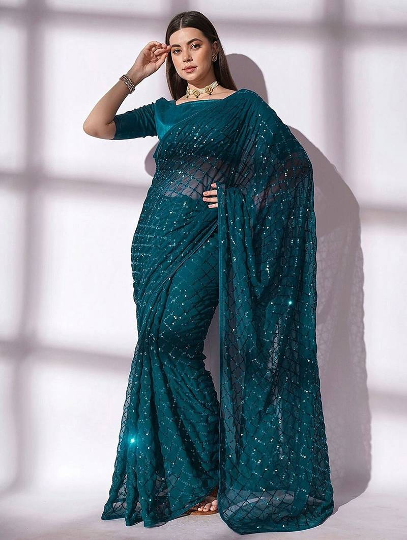 | Product Name | Women Gorgette Rama Zari Lace Work Saree | |