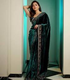 Women green embroidered viscose velvet saree