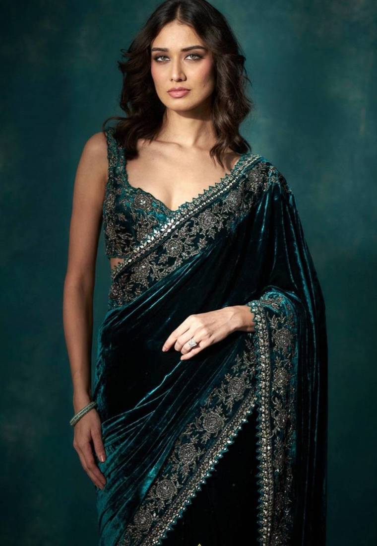 | Product Name | Women Green Embroidered Viscose Velvet Saree | |