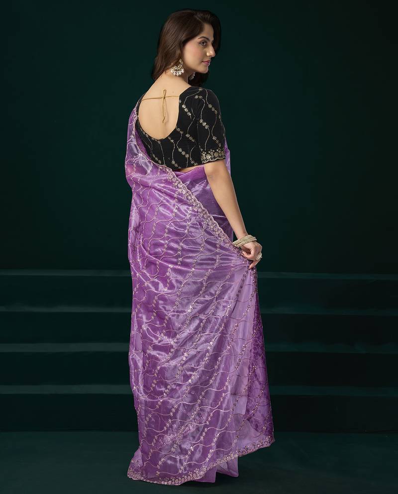 | Product Name | Women Lavender Embroidered Net Saree | |