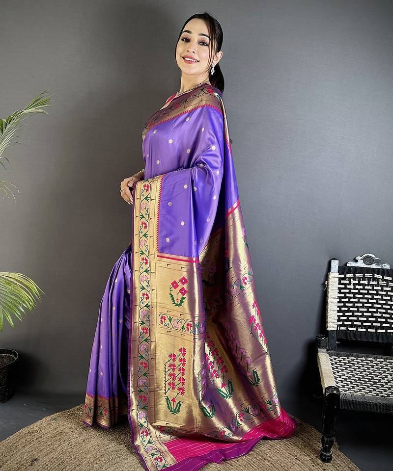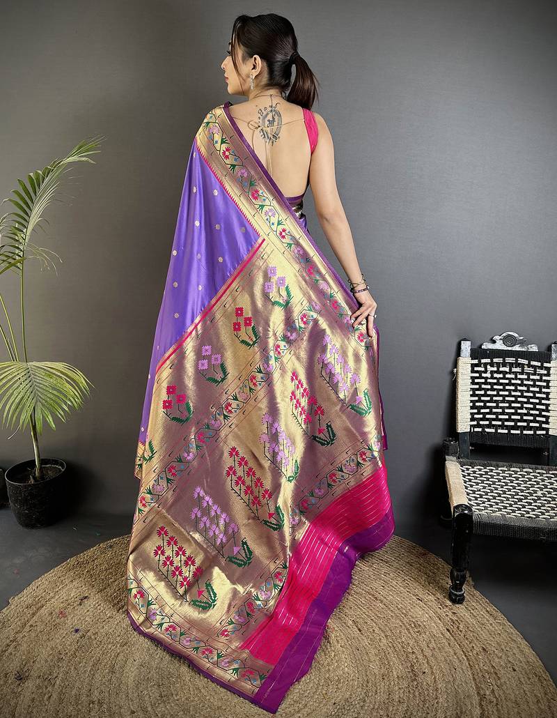 | Product Name | Women Lavender Ikkat Floral Motifs Lichi Silk Saree | |