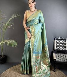 | • | Saree | : | Color- Light Green / Fabric- Pure Silk Blend |