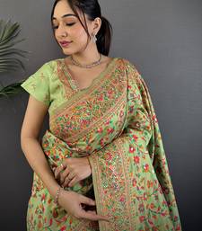 Women light green meenakari weaving pashmina silk saree