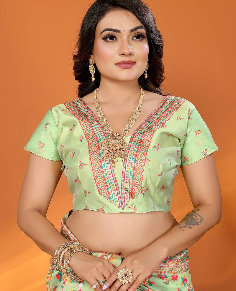 | Product Name | Women Light Green Meenakari Weaving Pashmina Silk Saree | |