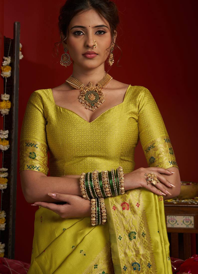 | • | Saree | : | Color- Lime / Fabric- Pure Silk Blend |
