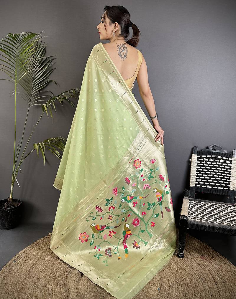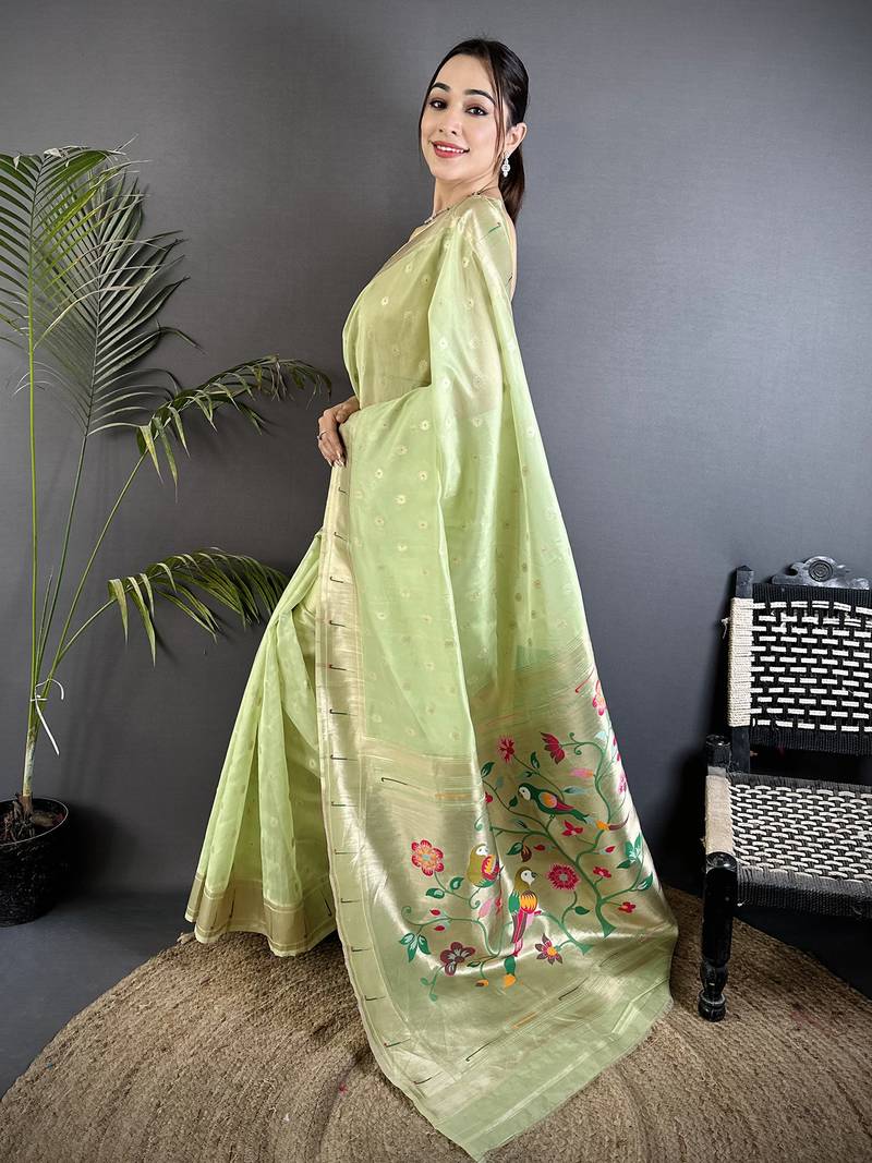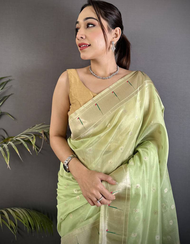 | Product Name | Women Lime Green Parrot & Floral Woven Design Tissue Saree | |