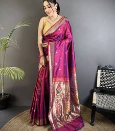 | • | Saree | : | Color- Magenta / Fabric- Pure Silk Blend |