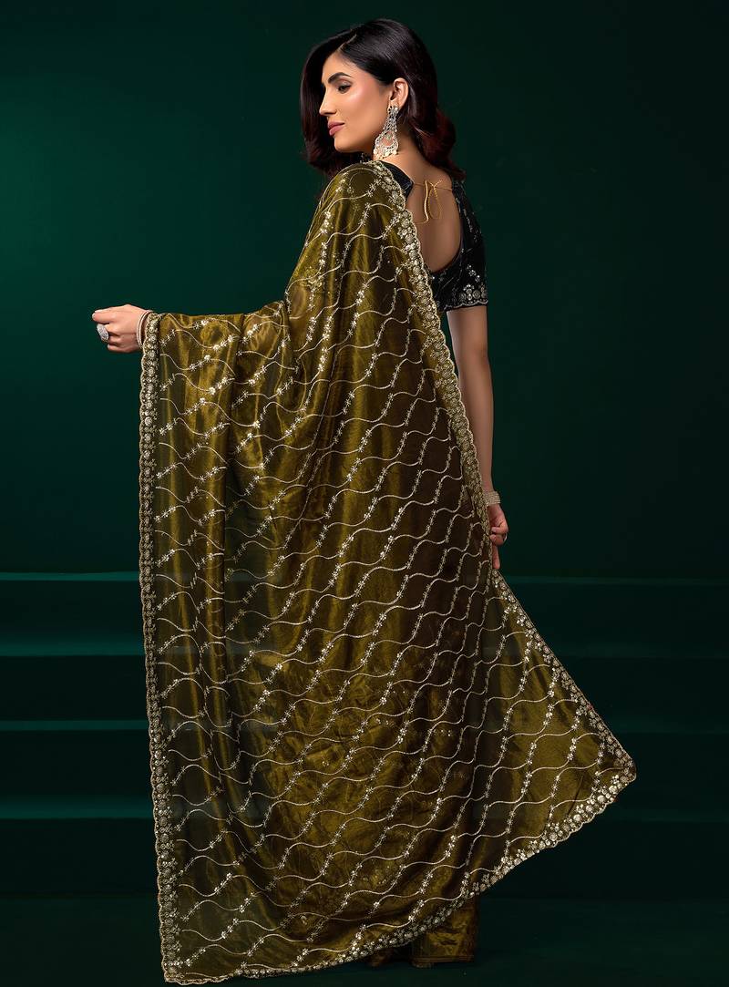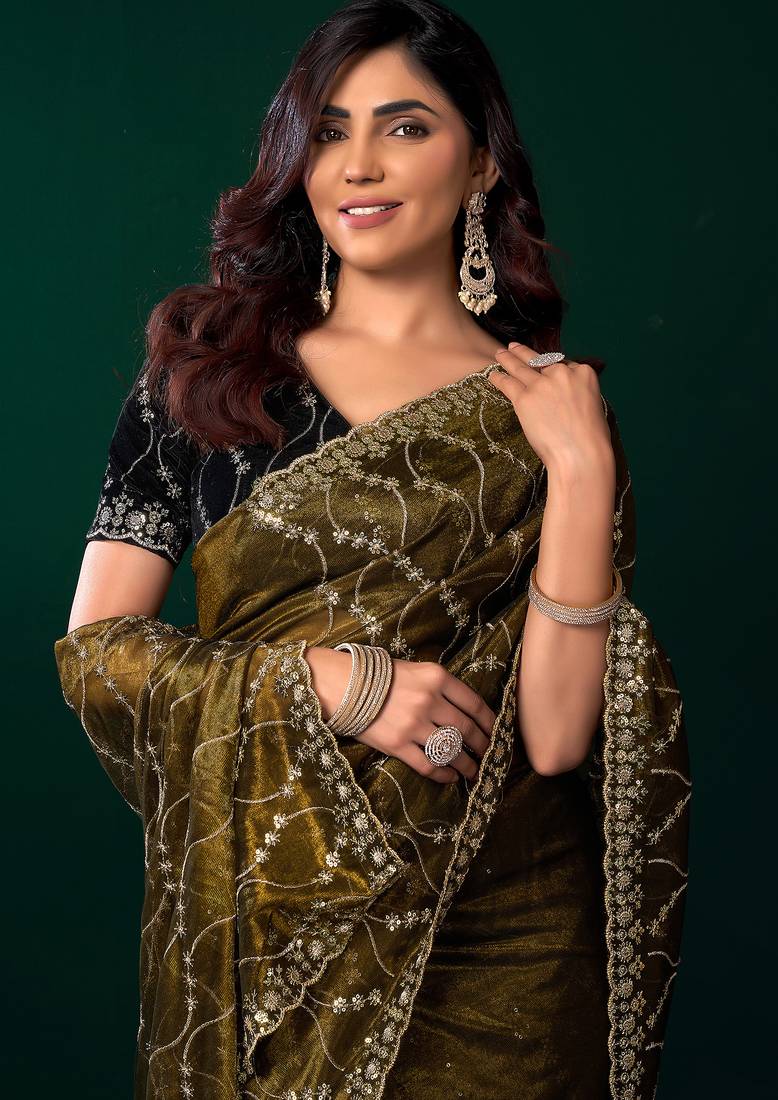 | • | Saree | : | Color- Mehendi / Fabric- Net |