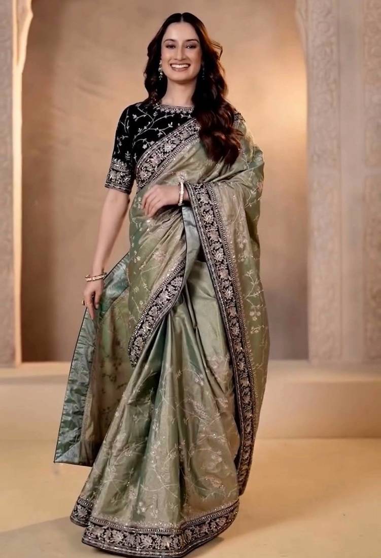 | Product Name | Women Mehndi Embroidered Soft Mocha Silk Saree | |