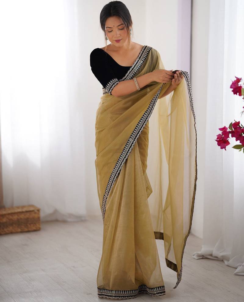 | • | Saree | : | Color- Chiku / Fabric- Net |
