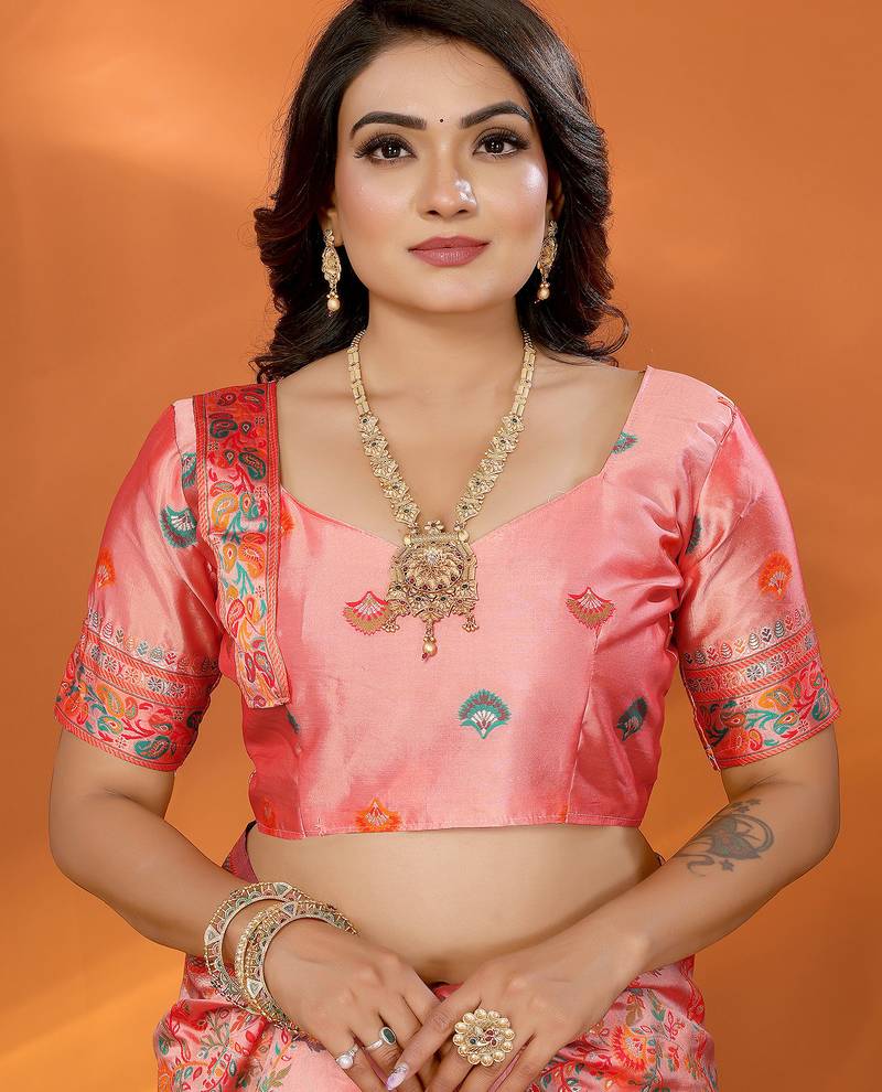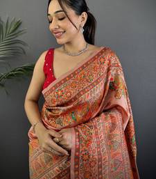 Women peach floral&paisley motifs pashmina silk saree