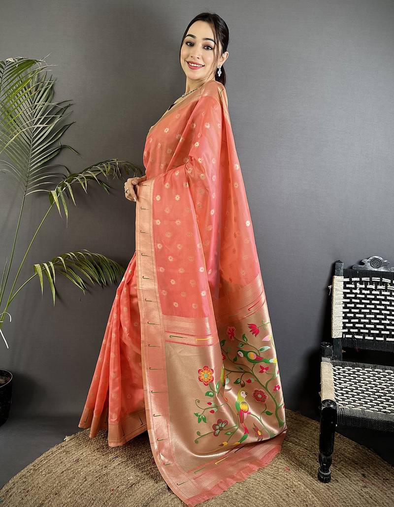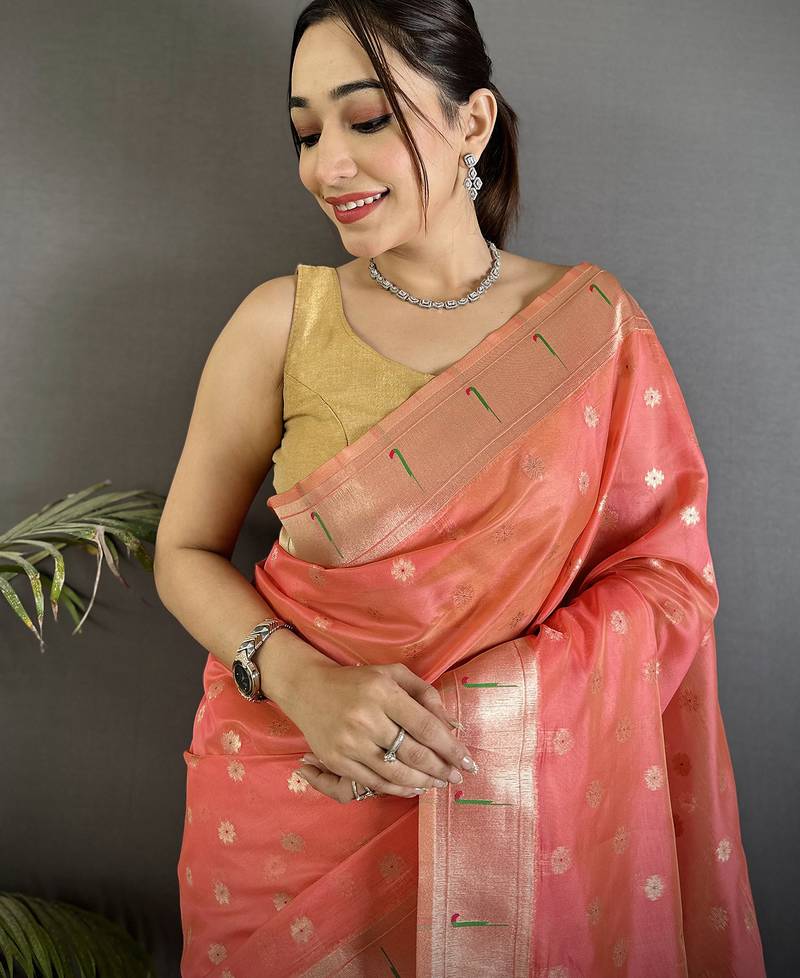 | Product Name | Women Pink Parrot & Floral Woven Design Tissue Saree | |