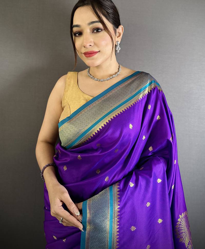 | Product Name | Women Purple Peacock&Floral Motifs Lichi Silk Saree | |