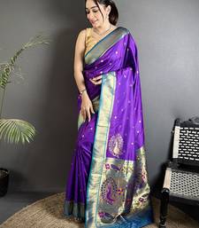 | Product Name | Women Purple Peacock Motifs Lichi Silk Saree | |
