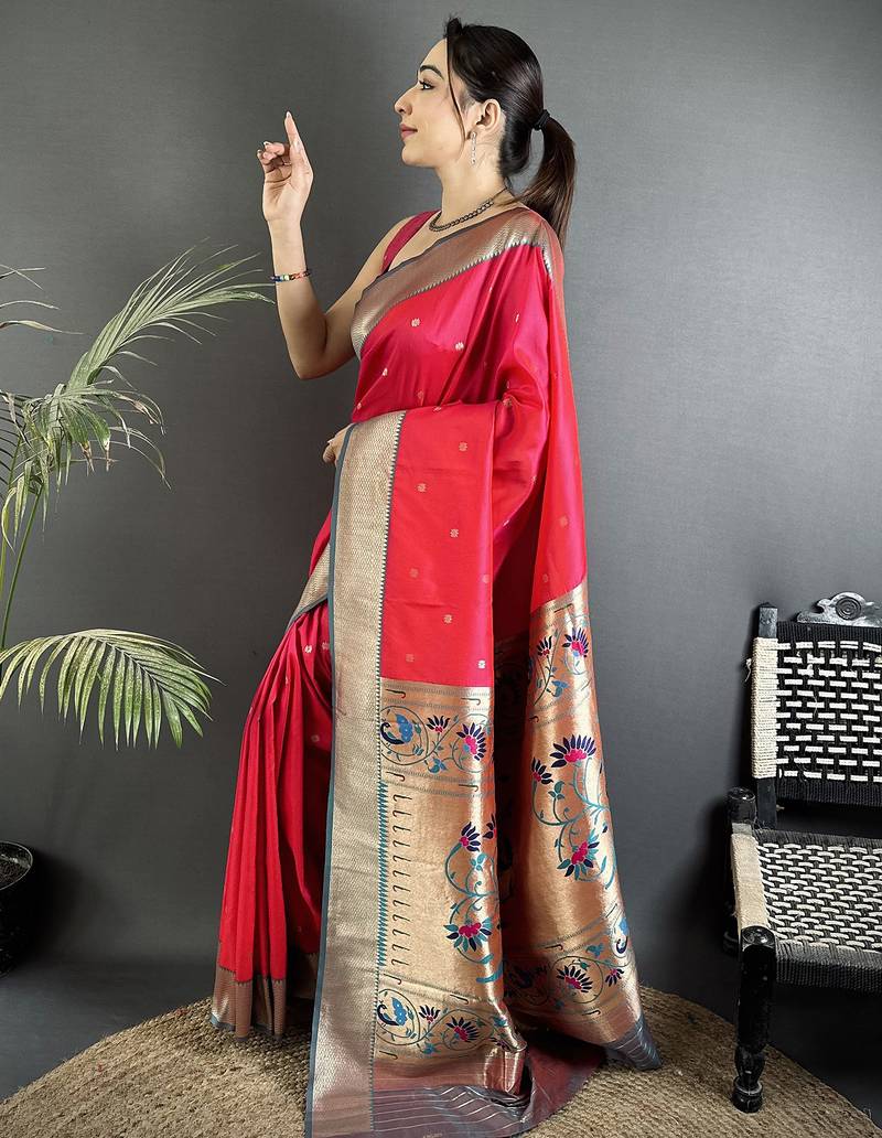 | Product Name | Women Rani Pink Peacock Motifs Lichi Silk Saree | |