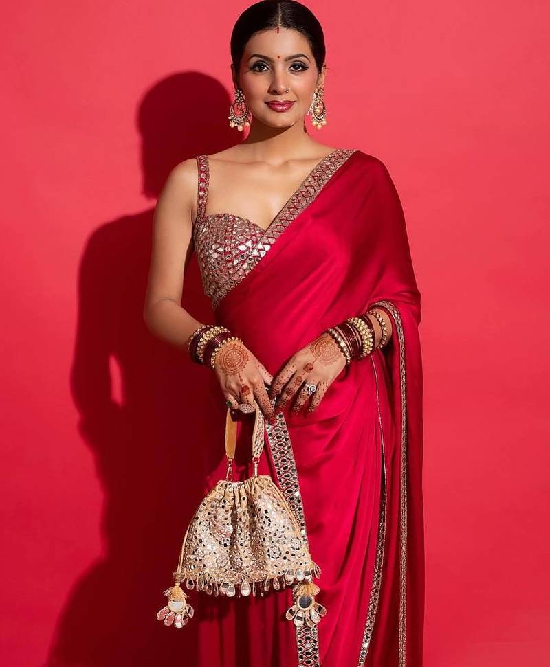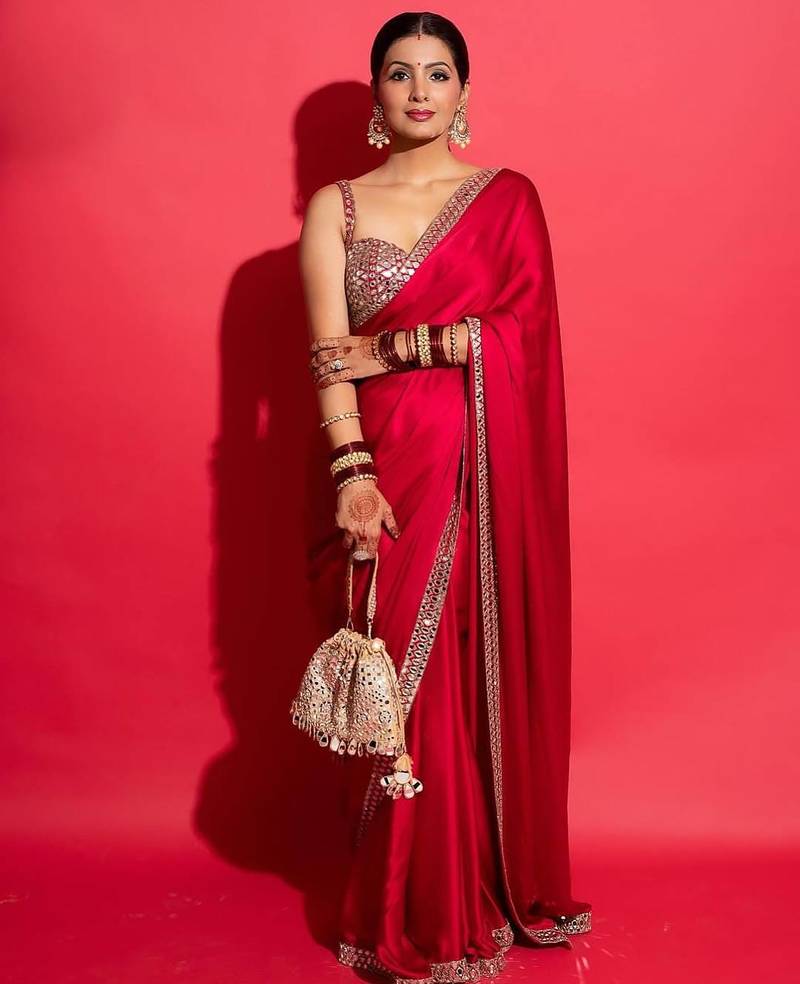 | • | Saree | : | Color- Red / Fabric- Art Silk |