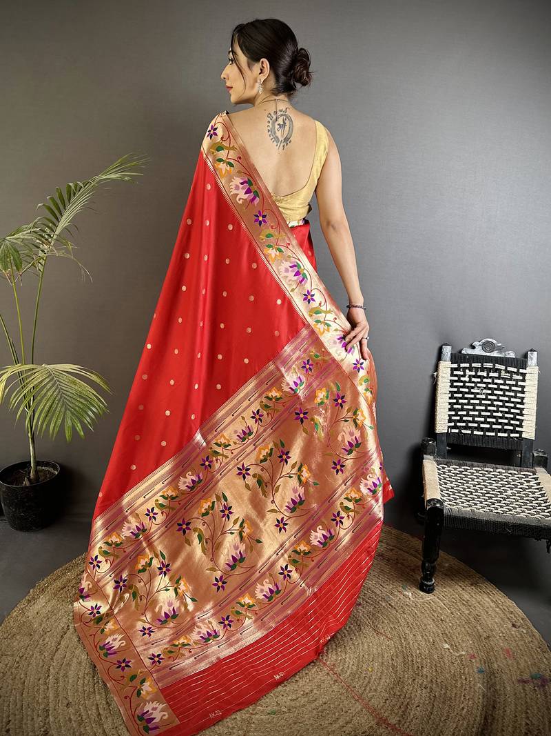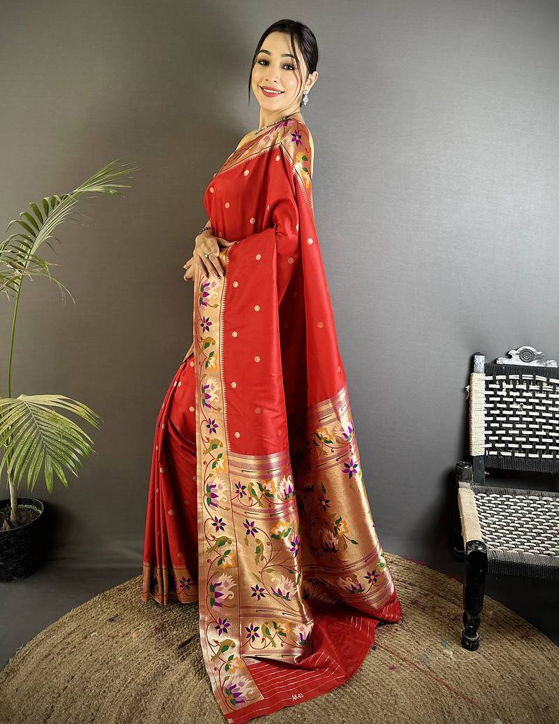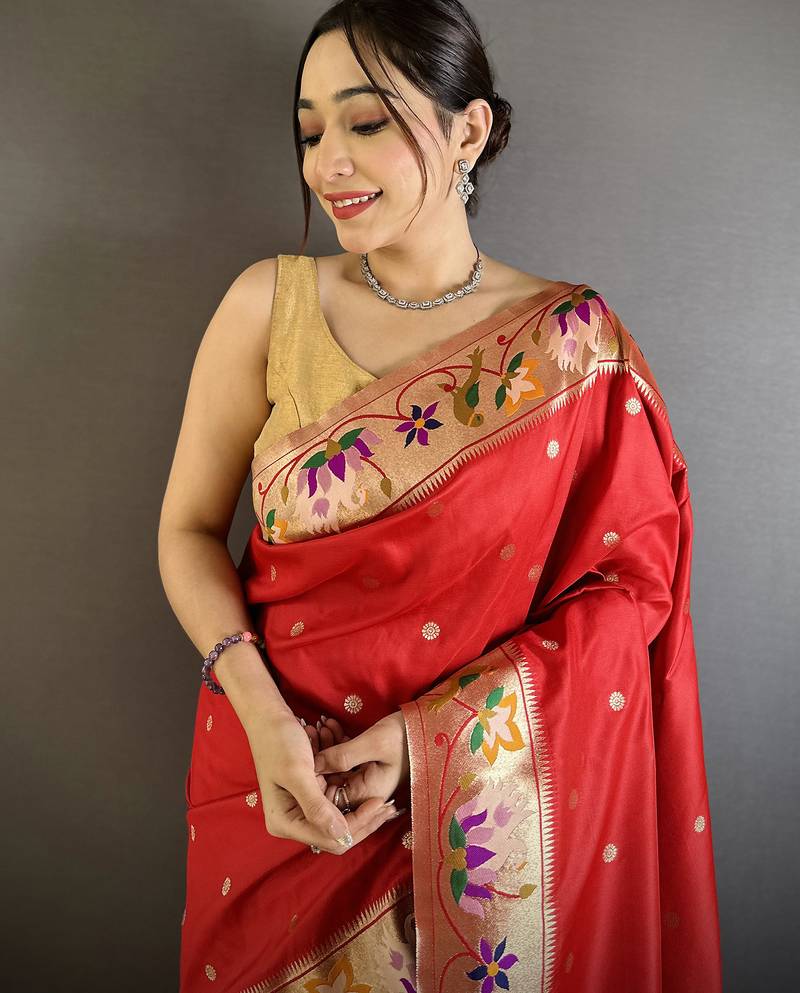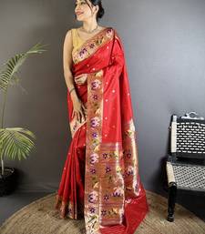 Women red floral & meena weaving lichi silk saree