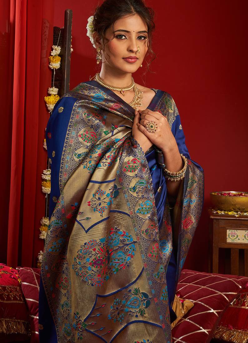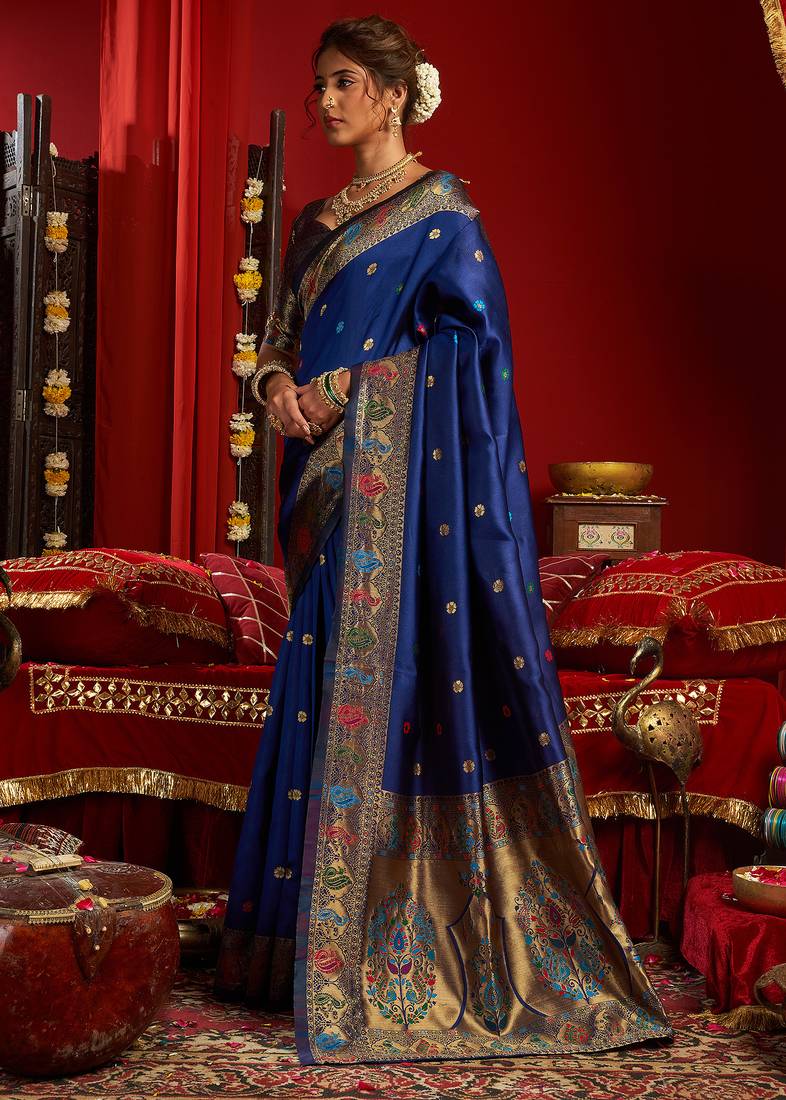 | • | Saree | : | Color- Royal Blue / Fabric- Pure Silk Blend |