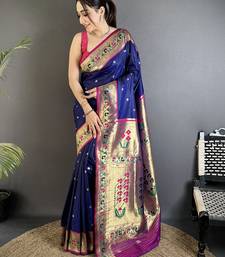 | • | Saree | : | Color- Royal Blue / Fabric- Pure Silk Blend |